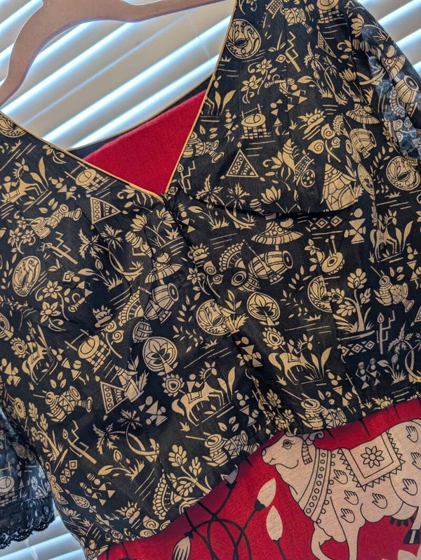 Kalamkari silk saree with readymade blouse