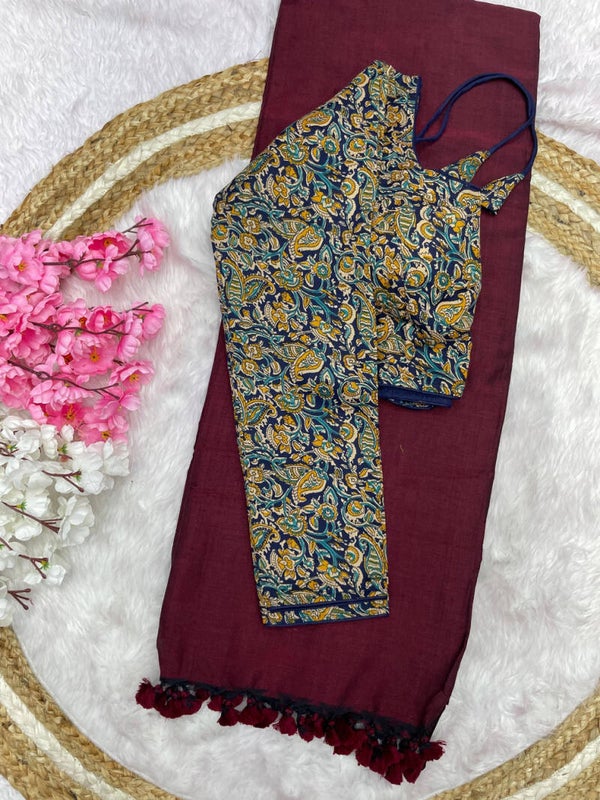 Khadi Cotton Silk Saree With Designer Readymade Blouse